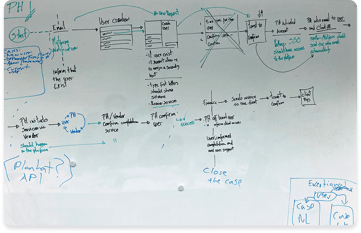 I approached the challenge as a systems problem, recognizing that every action across companies, skilled workers, and immigration specialists was interconnected. I mapped out the full onboarding ecosystem, managed research, and cross-functional workshops to uncover dependencies and friction points caused by the lack of standardization.